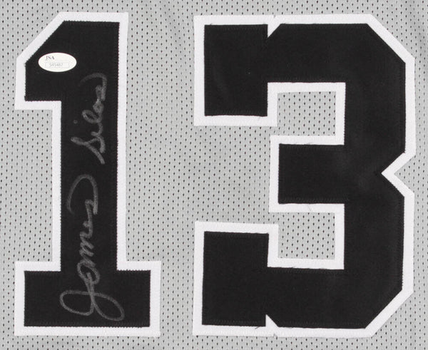 Custom on-court style jersey. Eveything sewn on, size XL. Hand-signed in black paint pen by James Silas. The lot / autograph(s) includes an official James Spence Authentication (JSA) hologram and matching COA for authenticity purposes. The signing of this item was witnessed by JSA.Authentication: JSA COA