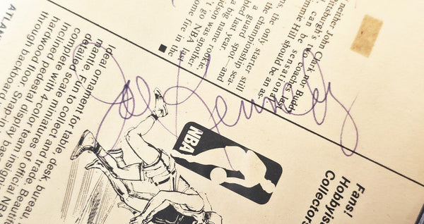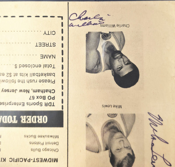 This is a 1970-71 8x11 Magazine Page Photo that has been hand signed by John Brisker. Also signed by Chuck Williams, Mike Lewis & Joe Kennedy. There are marks on the item as shown. It has been certified authentic by Beckett Authentication Services (BAS) and comes encapsulated in their tamper-proof holder.