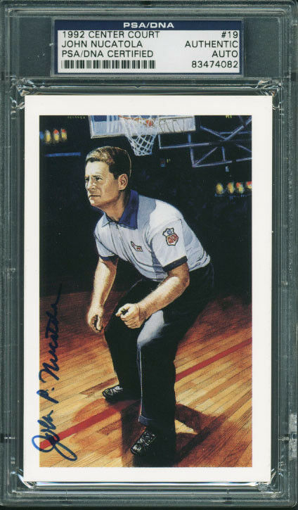This JOHN NUCATOLA SIGNED 3.5X5.5 1992 CENTER COURT #19 POSTCARD PSA/DNA SLABBED has been certified authentic. It comes slabbed and authenticated by PSA/DNA. You can also see the authentication on the PSA/DNA website, PSAcard.com.