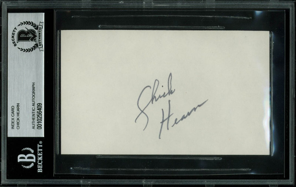 This Autographed 3x5 Index Card has been Personally Signed by Chick Hearn of the Los Angeles Lakers. This item is 100% Authentic, it comes slabbed and authenticated by Beckett Authentication Services.The authenticity can be verified on Beckett Authentication Services website. We only offers Authentic Autographs by Chick Hearn through Signings, In-Person Signings or Private Collections to include a 100% money back Lifetime Authenticity Guarantee.