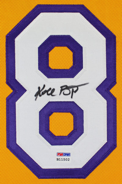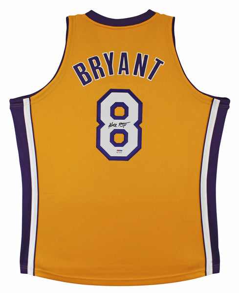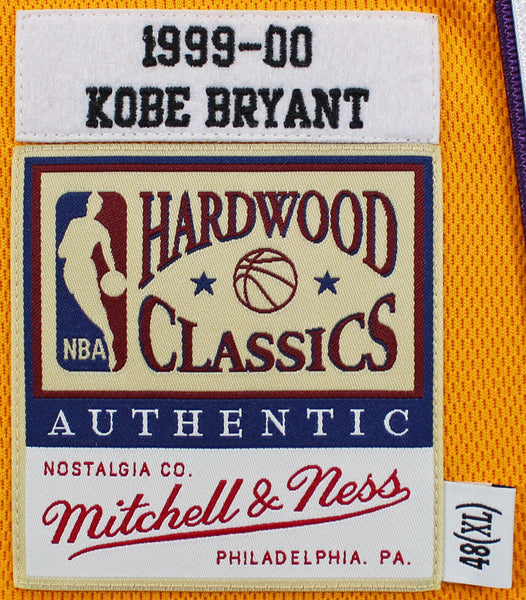 This Autographed Yellow 1999-00 Mitchell & Ness Hardwood Classics Authentic Jersey has been Personally Signed by Kobe Bryant of the Los Angeles Lakers. This item is 100% Authentic and comes with a PSA/DNA Certification Card and a matching numbered Hologram. The authenticity can be verified on Professional Sports Authenticator website. This is a X-Large sized Jersey.