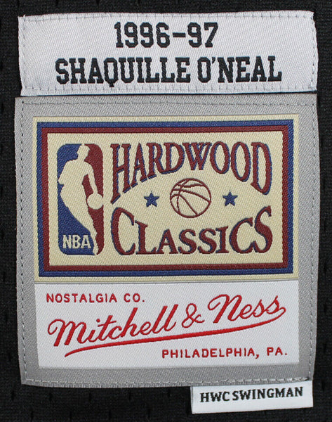 This Autographed Black Mitchell & Ness 1996-97 Hardwood Classics Swingman Jersey has been Personally Signed by Shaquille O'Neal of the Los Angeles Lakers. This item is 100% Authentic to include a hologram by Beckett Authentication Services. This item will come with the new Beckett Authentication hologram that has a scannable QR code rather than the traditional COA. If you would like to have a COA, you are welcome to reach out to Beckett for a printed certification once you receive your item. This is a BAS Witnessed Protection Program item which means a Beckett Authentication Service representative was present when this item was being signed. We conducted an autograph signing with Shaquille O'Neal where multiples of the same item were signed. While the photographs are representative of this item, the size, placement and strength of the signature may vary. Each item is hand signed, therefore, each autograph is unique. This item can be verified through BAS Witnessed. This is a X-Large sized Jersey.
