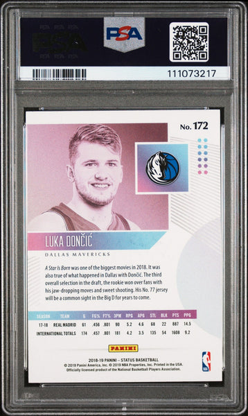 Luka Doncic Signed 2018 Panini Status #172 Rookie Card Auto 10! PSA/DNA Slabbed
