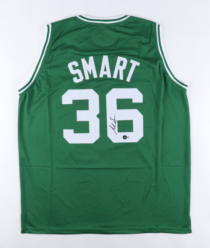 Custom on-field style jersey. Everything is sewn on, size XL. Hand-signed by Marcus Smart.The lot / autograph(s) includes an official Beckett Authentication Services serially-numbered hologram and for authenticity purposes.Authentication: Beckett Hologram