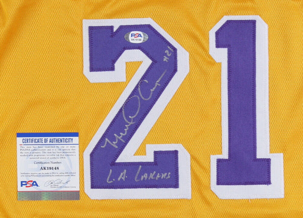 Custom on-court style jersey. Everything is sewn on, size XL. Hand-signed in silver paint pen by Michael Cooper. The lot / autograph(s) includes an official PSA/DNA hologram and matching COA for authenticity purposes.Authentication: PSA COA
