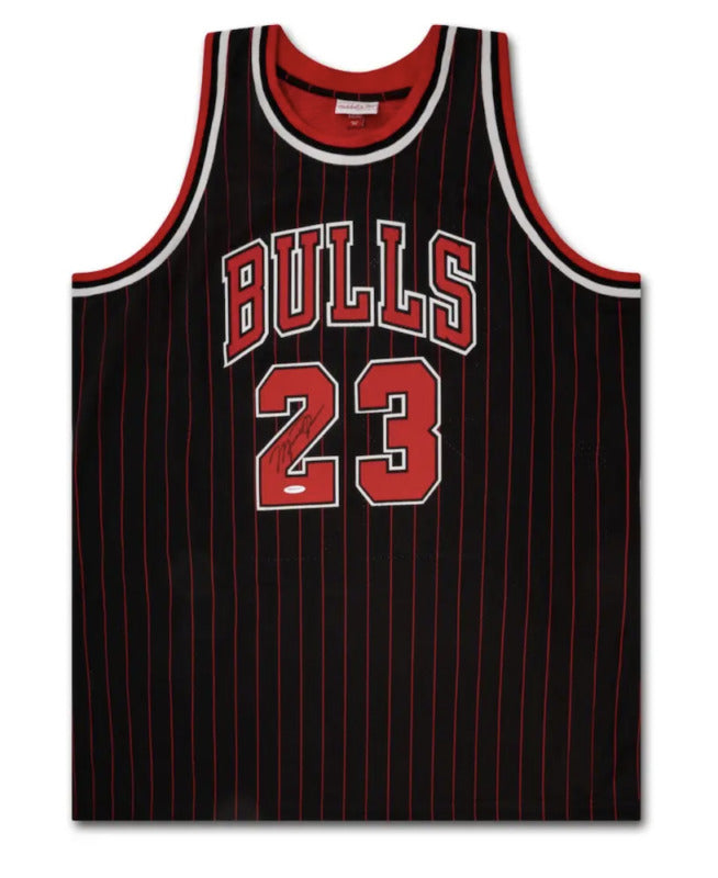 Coming off the record-breaking effort the season before in which they went 72-10 in the regular season and captured their fourth NBA Finals championship, the Chicago Bulls set out to continue to make history in the 1996-97 campaign. They were one 3-pointer at the buzzer away from becoming the first team in NBA history to have back-to-back 70-win seasons as they finished with an amazing 69-13 mark. They cruised through the playoffs again and met the Utah Jazz in the Finals. The Bulls took back-to-back losses in the first two games at the Delta Center in Utah as the series was evened at two games apiece. That?S when Jordan had one of the most memorable games in his legendary career, the famous ?Flu Game? In Game 5 in which he could barely get out of bed before the game and then went on to score 38 points with seven rebounds, five assists, three steals and one block in a 90-88 win. The Bulls would go on to win Game 6 and their fifth championship.This black jersey with red pinstripes was one of their most popular ones that season. Jordan has autographed this 1996-97 Chicago Bulls black with red pinstripes authentic Mitchell & Ness jersey in black paint pen. His signature is deemed authentic by virtue of Upper Deck Authenticated?S Five-Step Process. MONEY BACK GUARANTEE! If for any reason you are not completely satisfied with the quality or authenticity of your purchase, we will gladly give you a full refund or exchange, whichever you prefer up to 30 days after purchase. Please feel free to e-mail us with any questions. Thank you. Authenticator Pre-Certified Authenticator: Upper Deck Authenticated History of item: Michael Jordan signed this item in the presence of a representative from Upper Deck Authenticated. Describe how you came to possess this item: Super Sports Center is a fully authorized dealer for Upper Deck Authenticated as well as Mounted Memories and Steiner Sports. Other information about you and / or the item: Super Sports Center strives to deliver the most authentic in sports memorabilia from trusted companies like Mounted Memories, Steiner Sports and Upper Deck Authenticated. If it exists, we can find it for you!