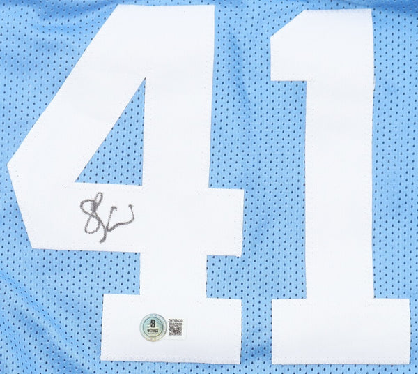 Custom on-court style jersey. Everything sewn on, size XL. Hand-signed by Sam Perkins (North Carolina Tar Heels).The autograph includes an official Beckett Authentication Services serially numbered hologram and QR Code card for authenticity purposes. The signing of this item was witnessed by Beckett.Authentication: Beckett Hologram with QR Code card