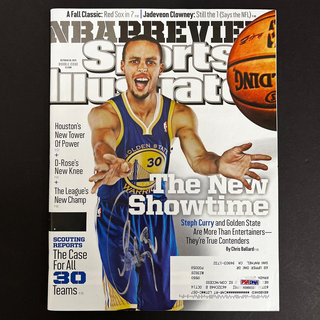 Sports Illustrated Magazine signed by Stephen Curry who notably played for the Golden State Warriors. The autograph of Stephen on this photo was authenticated by a team of experts at PSA/DNA so you can rest assured you are purchasing the real deal.
