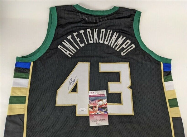 Custom on-court style jersey. Everything is sewn on, size XL. Jersey has been hand-signed in black felt-tip pen by Thanasis Antetokounmpo. The lot / autograph(s) includes an official James Spence Authentication (JSA) hologram and matching COA for authenticity purposes.Authentication: JSA COA