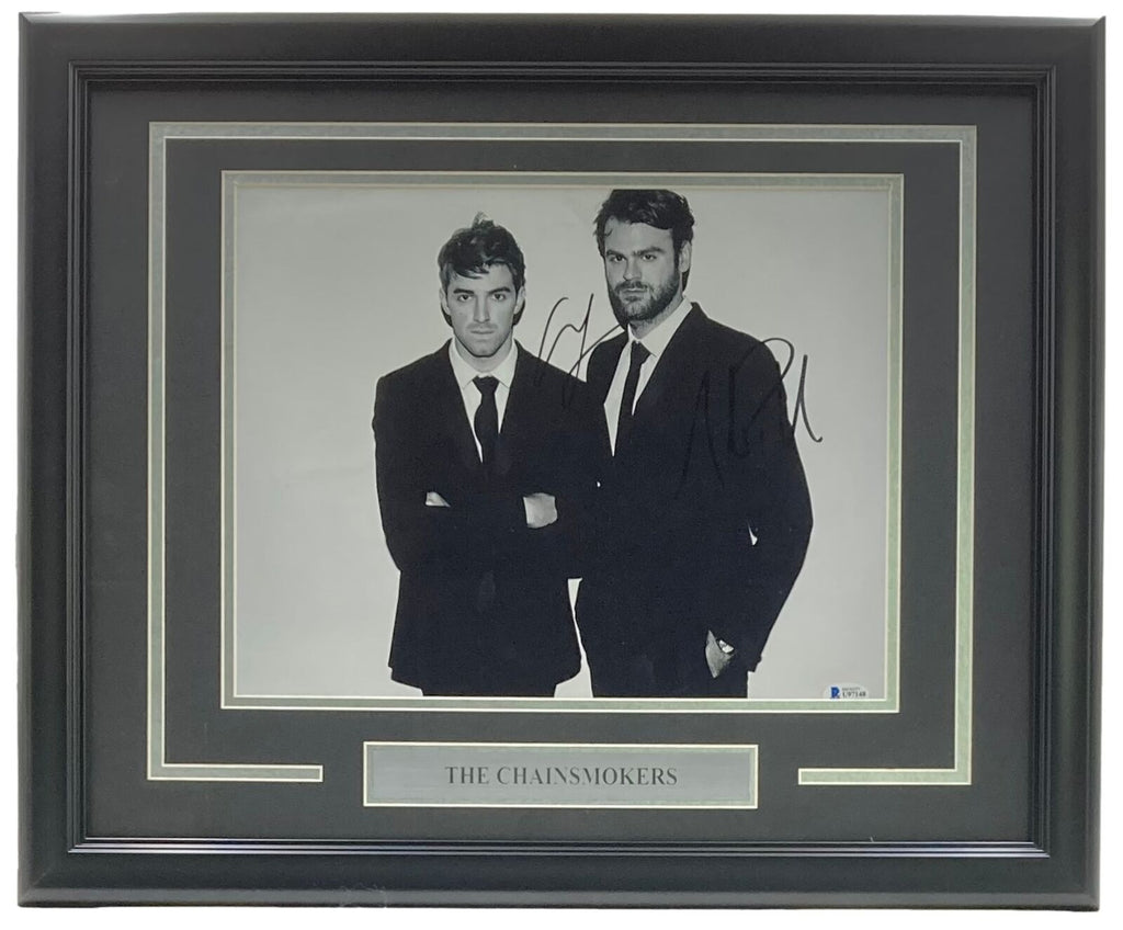 Featured is a The Chainsmokers signed 11x14 photo. This photo was hand signed by The Chainsmokers and comes with the Beckett hologram and certificate of authenticity. This photo has been professionally framed and matted and is approximately 16x20. SPECIFICATIONS Autographed By: The Chainsmokers Team: Sport: Basketball Authentication: Beckett Grading Services