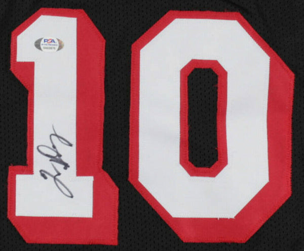 Custom on-court style jersey. Everything is sewn on, size XL. Has been hand-signed by Tim Hardaway.The lot / autograph(s) includes an official PSA/DNA hologram and matching COA for authenticity purposes. The signing of this item was witnessed by PSA.Authentication: PSA COA