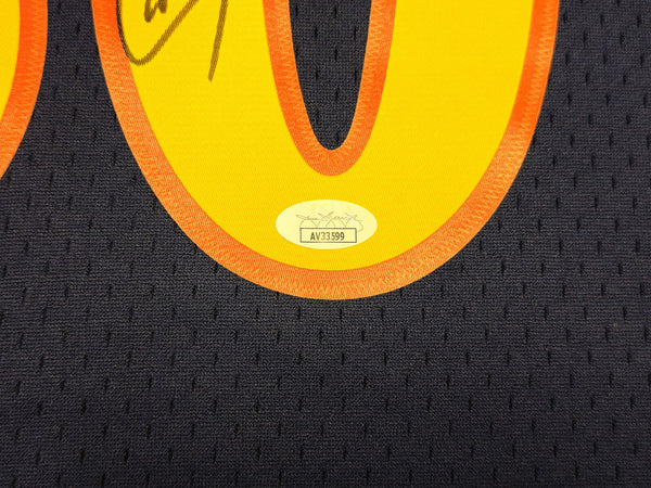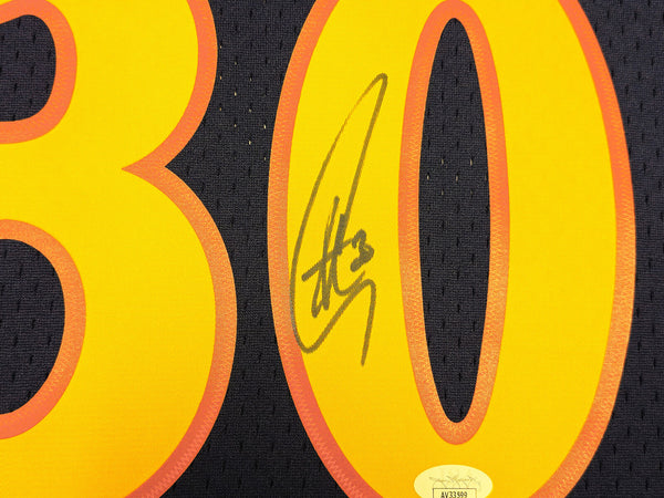 This is a Blue Authentic Mitchell & Ness Golden State Warriors 09-10 HWC Swingman Rookie Year Replica Jersey that has been hand signed by Stephen Curry. This jersey is Size L. This item has been certified authentic by JSA and comes with their tamper-proof hologram and matching certificate of authenticity.