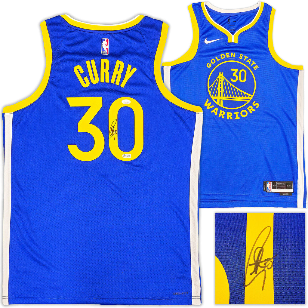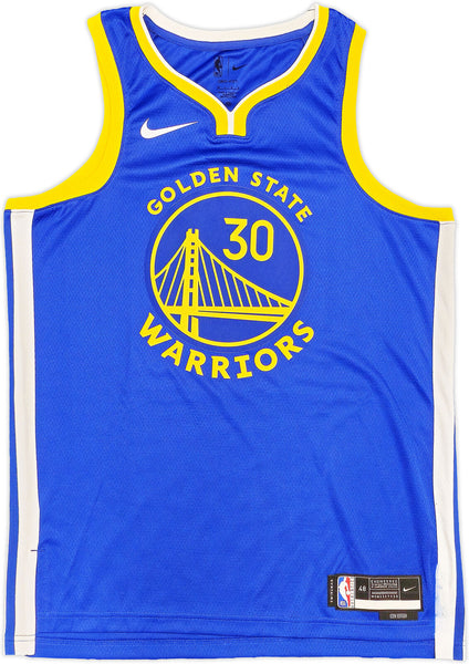 This is a Blue Nike Golden State Warriors Swingman Icon Edition Jersey that has been hand signed by Stephen Curry. This jersey is Size 48. This item has been certified authentic by JSA and comes with their tamper-proof hologram and matching certificate of authenticity.