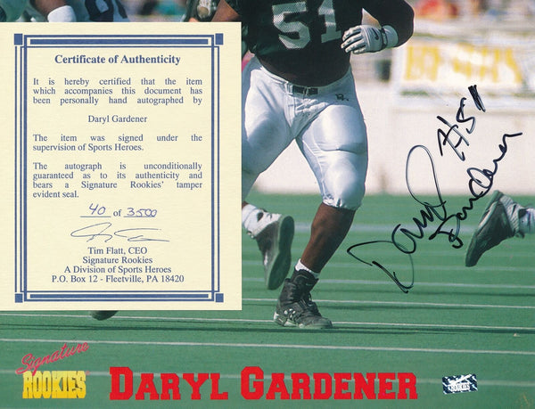 Daryl Gardener Autographed Signature Rookies 40 of 3500 8x10 Photo Baylor. This photo is authenticated by Signature Rookies and includes their Tamper-proof Sticker and Certificate of Authenticity.