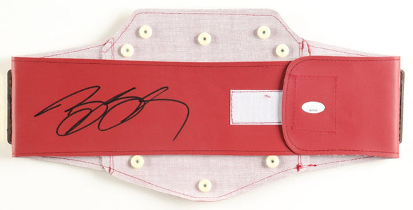 Replica WWE championship belt. Hand-signed by Bill Goldberg (HOF).The lot / autograph(s) includes an official James Spence Authentication (JSA) hologram and matching COA for authenticity purposes. The signing of this item was witnessed by JSA.Authentication: JSA COA