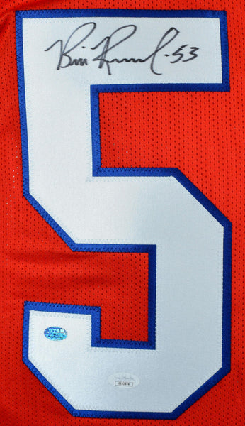 Bill Romanowski Autographed Pro Style Orange Jersey- JSA *Black THIS IS NOT AN NFL JERSEY. THIS HAS NO TAGS, NO LOGOS, NO EMBLEMS. This is a Hand Autographed Pro Style Jersey Signed by Bill Romanowski. This is a Custom Made (Non Name Brand) Authentic Style (Stitched Letters and Numbers) Jersey. This item has a James Spence Witness Protection Authentication, which Comes with a JSA #'ed Sticker and a Matching JSA COA. It was signed either at a public autograph appearance or a Private Signing. This is a stock photo of the item. Although you may not receive this exact item, the item you receive is virtually identical and brand new in great shape. Jersey size is XL.