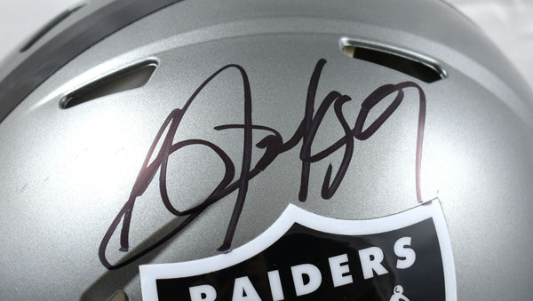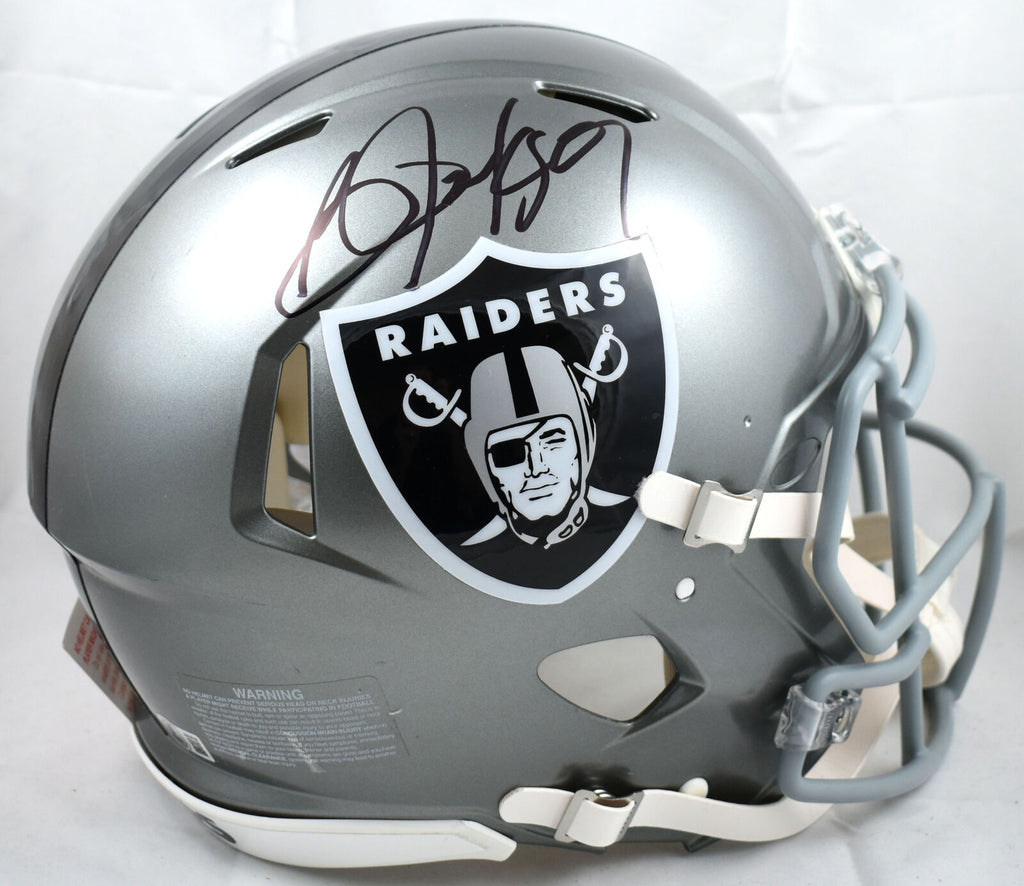 This is a Bo Jackson of the Raiders Autographed Riddell football full size Flash Speed Authentic helmet. This item has a Beckett Witnessed Authentication, which comes with a numbered sticker hologram and a QR code for verification. You can view this item on the Beckett Authentication website and it shows when and where the item was signed. It was signed either at a public autograph appearance or a private signing. This is a stock photo of the item. Although you may not receive this exact item, the item you receive is virtually identical, brand new, and in great shape. *Autograph location may vary* This is a Bo Jackson of the Raiders Autographed Riddell football full size Flash Speed Authentic helmet. This item has a Beckett Witnessed Authentication, which comes with a numbered sticker hologram and a QR code for verification. You can view this item on the Beckett Authentication website and it shows when and where the item was signed. It was signed either at a public autograph appearance or a private signing. This is a stock photo of the item. Although you may not receive this exact item, the item you receive is virtually identical, brand new, and in great shape. *Autograph location may vary*