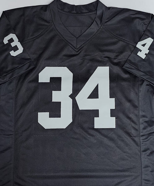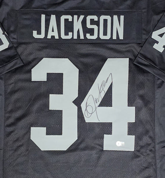 autographed CUSTOM REPLICA BLACK JERSEY of Oakland Raiders Legend BO JACKSON. This jersey is signed with Black sharpie. This jersey is size XL with all letters and numbers sewn in. This item was signed at a private signing with us and would make a great addition to any Jackson or Raiders collection. This item is guaranteed to be 100% authentic and will include a COA hologram from Beckett authentication.