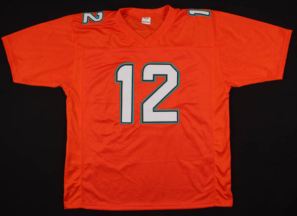 Custom on-field style jersey. Everything is sewn on, size XL. Hand-signed in black felt-tip pen by Bob Griese (HOF). The autograph includes an official James Spence Authentication (JSA) hologram and matching COA for authenticity purposes. The signing of this item was witnessed by JSA.Authentication: JSA COACustom on-field style jerseys are a more affordable option for autograph seekers. These jerseys do not have any brand name or tags and are made in the Philippines. They feature stitched on names and numbers and are made to look very similar to the on-field jerseys that the players wear. These custom jerseys are very commonly used in the memorabilia industry.