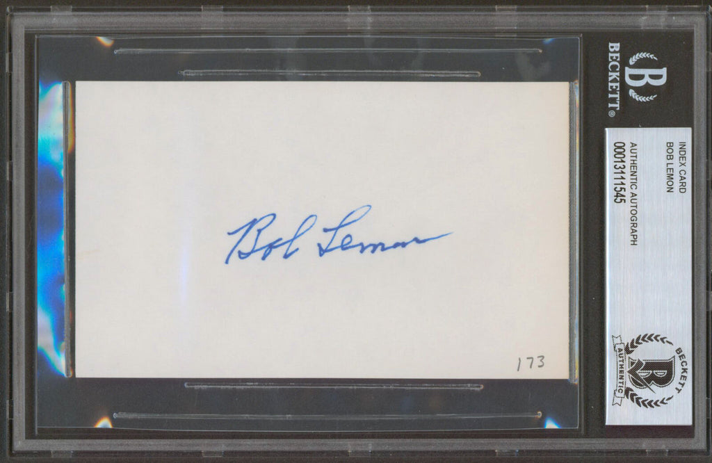 Indians Bob Lemon Authentic Signed 3x5 Index Card Autographed BAS Slab