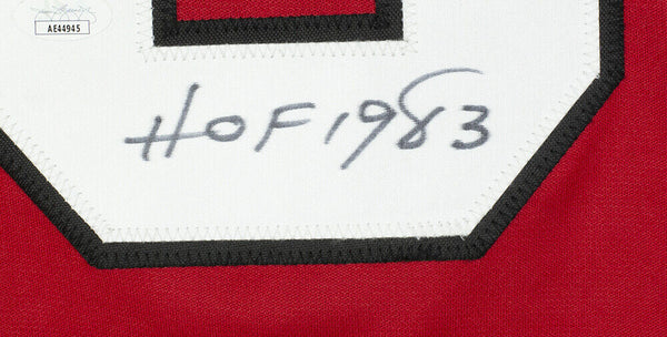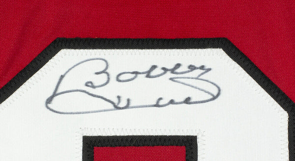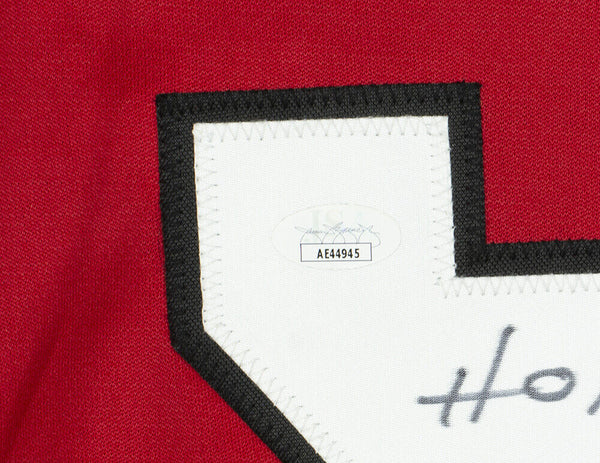 Featured is a Bobby Hull signed custom red hockey jersey in which he added the " HOF 1983 and The Golden Jet" inscription. This jersey was hand signed by Bobby Hull and authenticated by JSA authentication services. Included with the jersey is a JSA hologram and certificate of authentication. This item would make a great addition to any sports memorabilia collection!. SPECIFICATIONS Autographed By: Bobby Hull Team: Chicago Blackhawks Sport: Hockey Authentication: Professional Sports Authenticator (PSA)