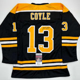 Autographed/Signed Charlie Coyle Boston Black Hockey Jersey JSA COA Jersey has no brand names or logos. This is a custom jersey and was not manufactured by or in any manner associated with any professional sports league or manufacturer. This custom jersey carries no professional sports league designation. The item is intended to be an autographed collectible. The custom jersey displays the name and number of the player. This item in no way is affiliated with or connected to any professional sports organization. Size is XL.