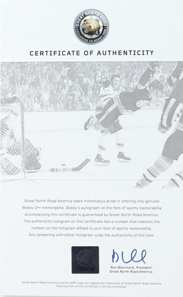 Photo measures 8" x 10" in size and has been hand-signed by Bobby Orr (Boston Bruins, HOF).The lot / autograph(s) includes an official Bobby Orr player hologram and COA for authenticity purposes.Authentication: Orr COA
