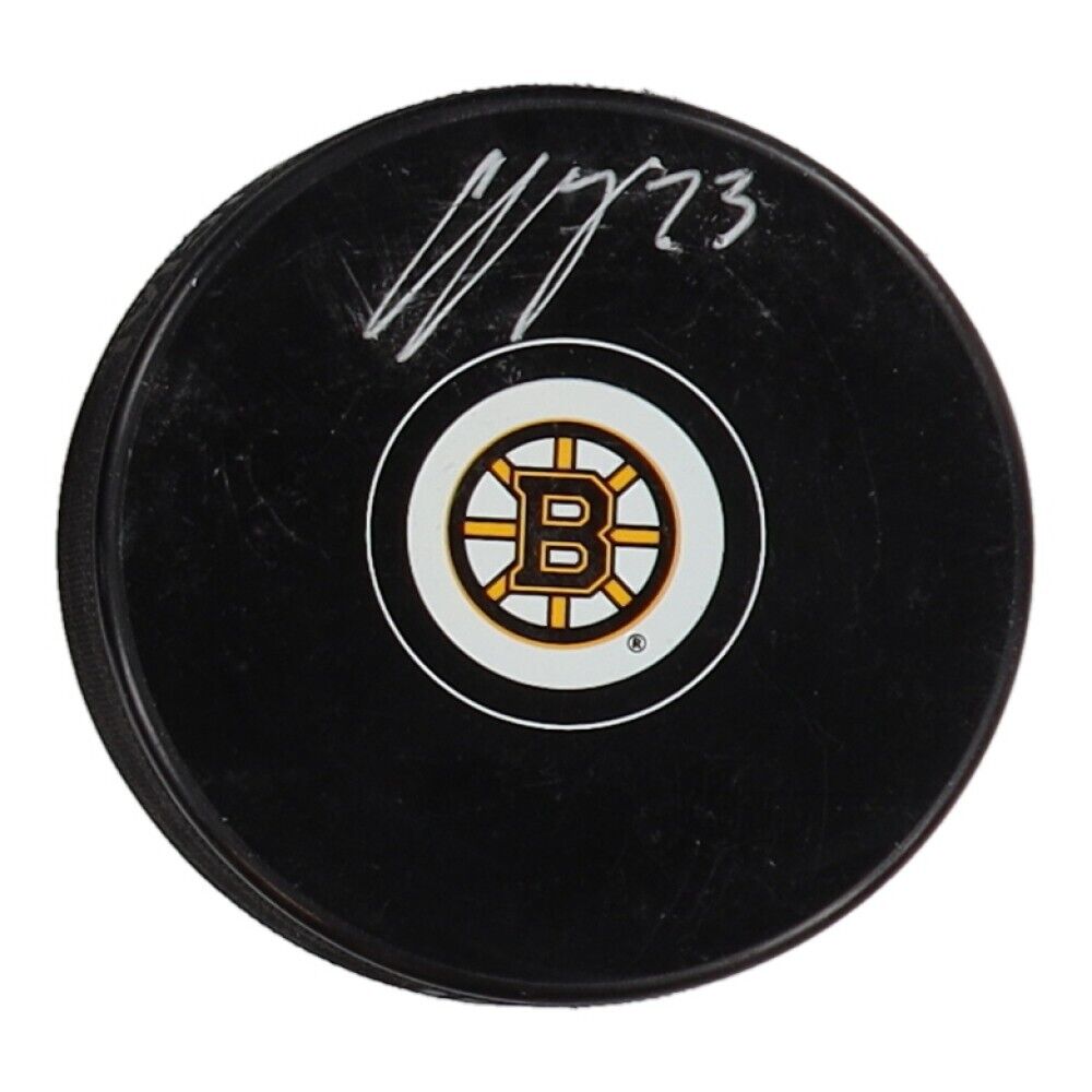 Boston Bruins logo hockey puck has been hand-signed by Charlie McAvoy.The lot / autograph(s) includes an official Fanatics hologram for authenticity purposes.Authentication: Fanatics Hologram