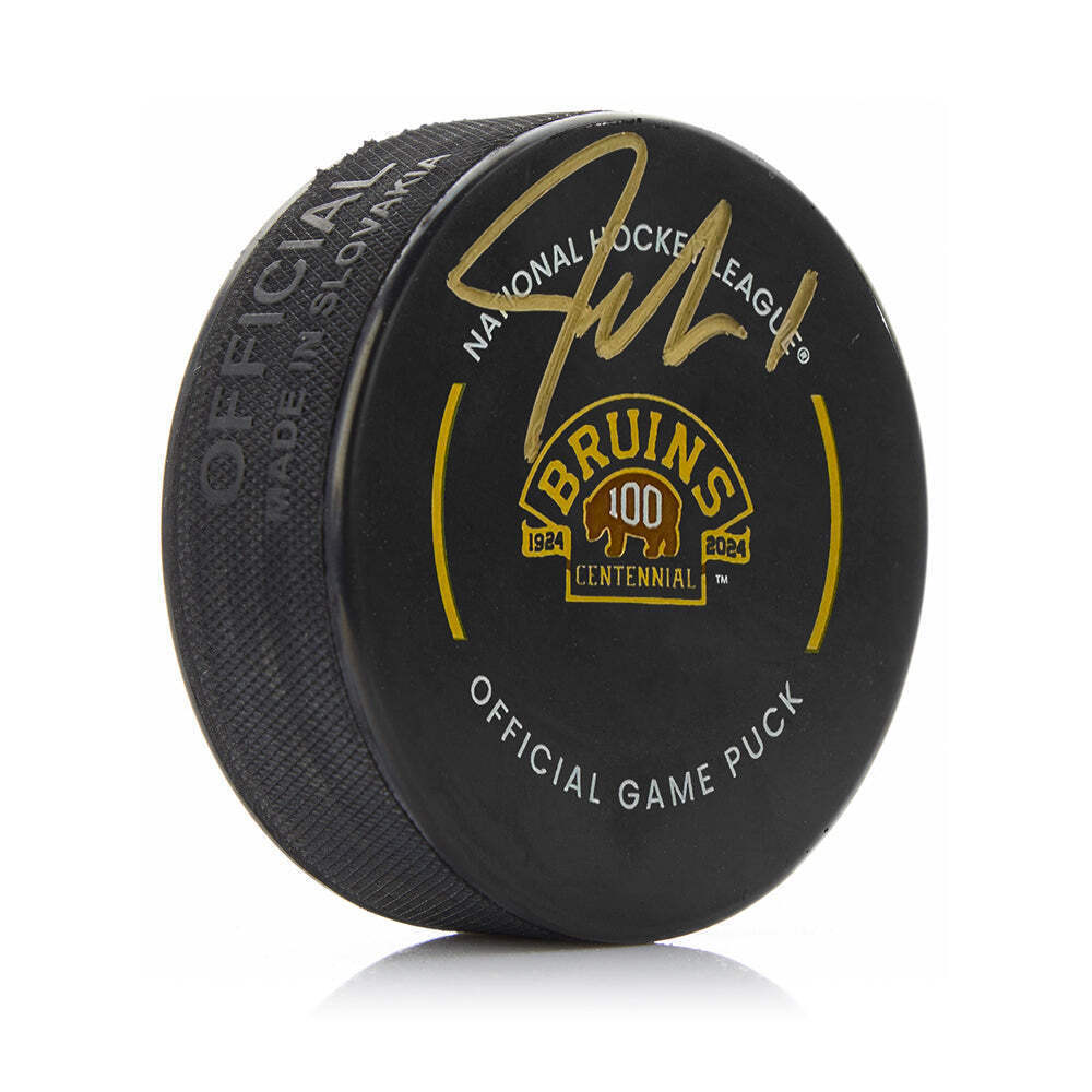 Jeremy Swayman Boston Bruins Autographed 100th Anniversary Game Puck JSA PSA Jeremy Swayman Boston Bruins Autographed 100th Anniversary NHL Official Game Puck Signed puck from Bruins star goalie Jeremy Swayman; authenticated by Dynasty Sports during public autograph appearance This officially licensed hockey puck has been signed by Boston Bruins star goalie Jeremy Swayman. It has been authenticated by Dynasty Sports during a public autograph experience on August 10, 2024. Hand-Signed by Boston Bruins star goalie Jeremy Swayman Signature is bold and clear on the puck Officially licensed NHL puck Authenticated by Dynasty Sports from public autograph event Custom framing options available - contact our storefront for information regarding customizing this in the frame and matting colors of your choice! Add a nameplate and team logo medallions! Please allow additional time for framing and shipping.