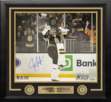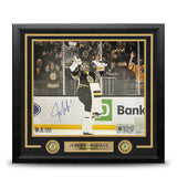 Jeremy Swayman Celebration Boston Bruins Autographed 16" x 20" Framed Hockey Photo Signed picture of Bruins star goalie Jeremy Swayman; authenticated by Dynasty Sports during public autograph appearance This officially licensed photo has been signed by Boston Bruins star goalie Jeremy Swayman. It has been authenticated by Dynasty Sports during a public autograph experience on August 10, 2024. Hand-signed by Boston Bruins star goalie Jeremy Swayman Signature is bold and clear on the photo Authenticated by Dynasty Sports from public autograph event Framing is professional quality Framed 16" x 20" measures 22" x 26" Click here to purchase this autographed framed photo in 8" x 10" size Click here to purchase this autographed framed photo in 11" x 14" size Click here to purchase the autographed photo only Custom framing options available - contact our storefront for information regarding customizing this in the frame and matting colors of your choice! Add a nameplate and team logo medallions! Please allow additional time for framing and shipping