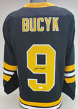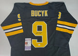 Custom on-ice style jersey. Everything sewn on, size XL. Hand-signed and inscribed in black felt-tip pen by Johnny Bucyk (HOF). The autograph includes an official James Spence Authentication (JSA) hologram and matching COA for authenticity purposes.Authentication: JSA COA