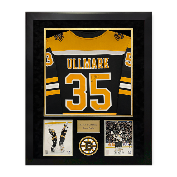 This jersey framed to 32x40 has been personally hand signed by Linus Ullmark of the Boston Bruins100% Authentic Ready to hang on the wallCertificate of Authenticity by Fanatics AuthenticExact location of signature may varyasgmemorabilia.com