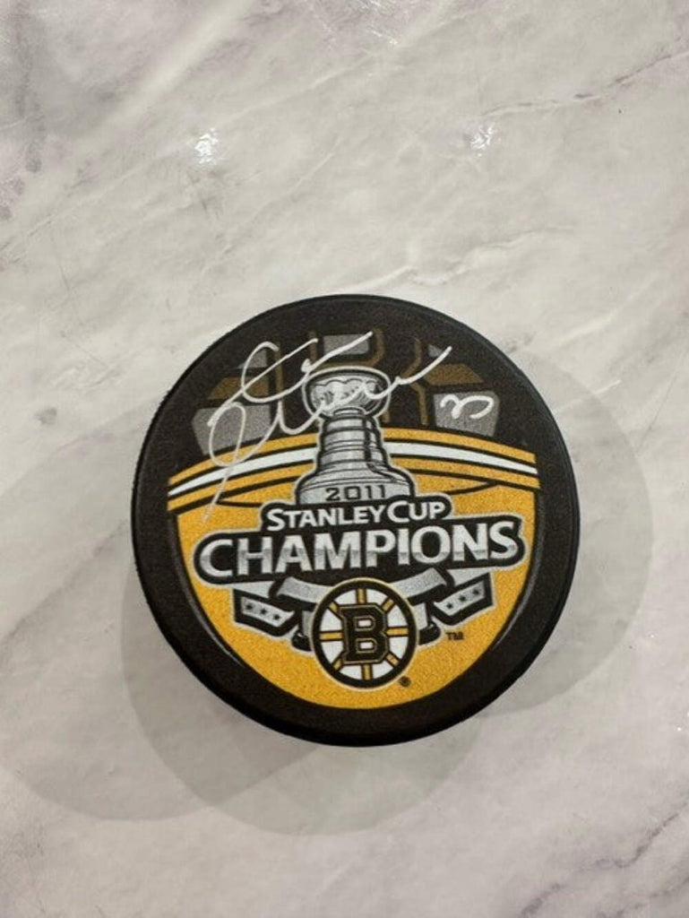 Zdeno Chara Boston Bruins Autographed 2011 Stanley Cup Champions Hockey Puck Signed puck of Bruins legend Zdeno Chara; authenticated by Dynasty Sports This officially licensed hockey logo puck has been hand-signed by Bruins hockey legend Zdeno Chara. It has been authenticated by Dynasty Sports during a public autograph event on March 2, 2024. Hand-Signed by Boston Bruins legend Zdeno Chara Signature is bold and clear on the puck Officially licensed NHL puck Authenticated with Dynasty Sports serially numbered hologram during public autograph event Custom framing options available - contact our storefront for information regarding customizing this in the frame and matting colors of your choice! Add a nameplate and team logo medallions! Please allow additional time for framing and shipping.