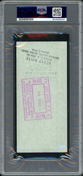 This is a 3x6 Check that has been hand signed by Bill Russell. It has been certified authentic by PSA/DNA and comes encapsulated in their tamper-proof holder.
