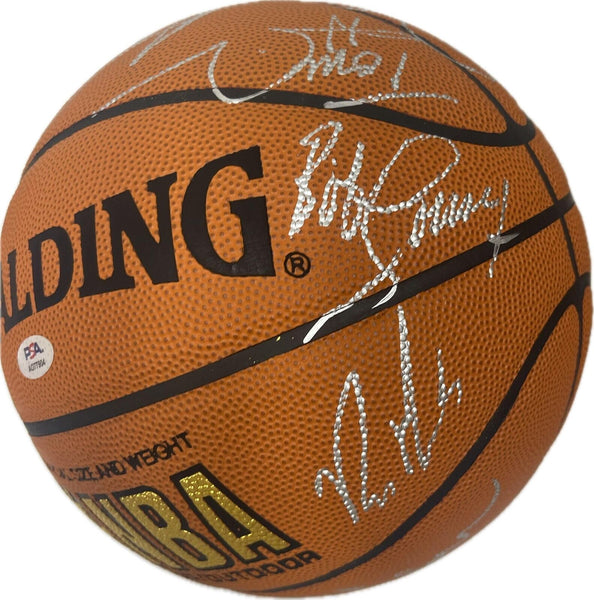 Spalding Basketball signed by Boston Celtics Legends. This ball has 11 signatures from the different Celtics Players. The ball is signed by the following notable players: (All 11 signatures have been authenticated by PSA/DNA) Kevin Mchale Bob Cousy Rick Pitino Tom Heinsohn Dave Cowens Jo Jo White Danny Ainge Dennis Johnson All 11 autographs on this basketball were authenticated by a team of experts at PSA/DNA and come with a Letter of Authenticity so you can rest assured you are purchasing the real deal. Don't miss your opportunity to own this one-of-a-kind basketball autographed by Boston Celtics All-Time Greats.