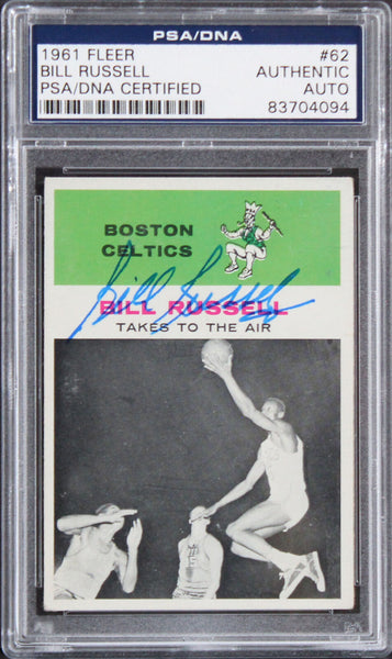 Celtics Bill Russell Authentic Signed 1961 Fleer #62 Card PSA/DNA Slabbed