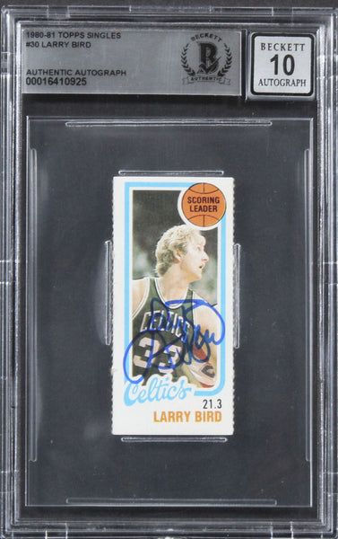 Celtics Larry Bird Signed 1980 Topps Singles #30 Card Auto 10! BAS Slabbed 1