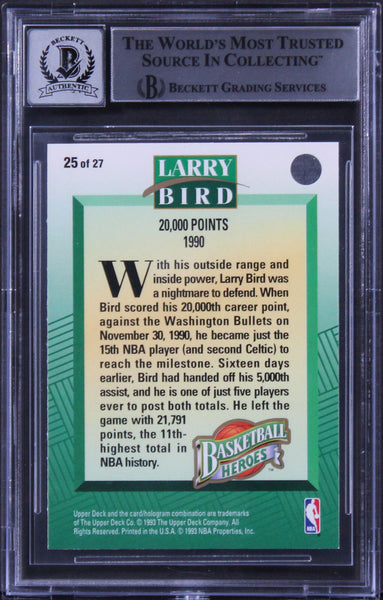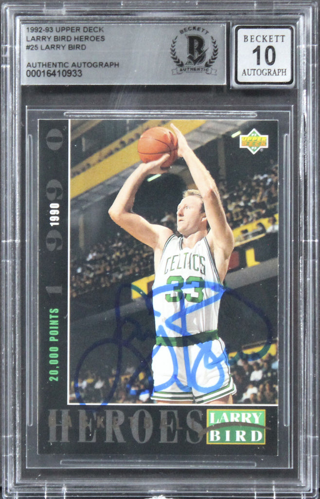 This Autographed Auto Graded Gem Mint 10! 1992 Upper Deck Larry Bird Heroes #25 Card has been Personally Signed by Larry Bird of the Boston Celtics. This item is 100% Authentic, it comes slabbed and authenticated by Beckett Authentication Services. The authenticity can be verified on Beckett Authentication Services website.