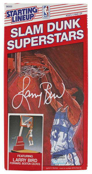 This Autographed Sealed 1998 Starting Lineup Slam Dunk Superstars has been Personally Signed by Larry BIrd of the Boston Celtics. This item is 100% Authentic to include a Certificate of Authenticity (COA) / hologram by Beckett Authentication Services. This is a BAS Witnessed Protection Program item which means a Beckett Authentication Service representative was present when this item was being signed. The authenticity can be verified on Beckett Authentication Services website. Please refer to photos for condition prior to purchase.