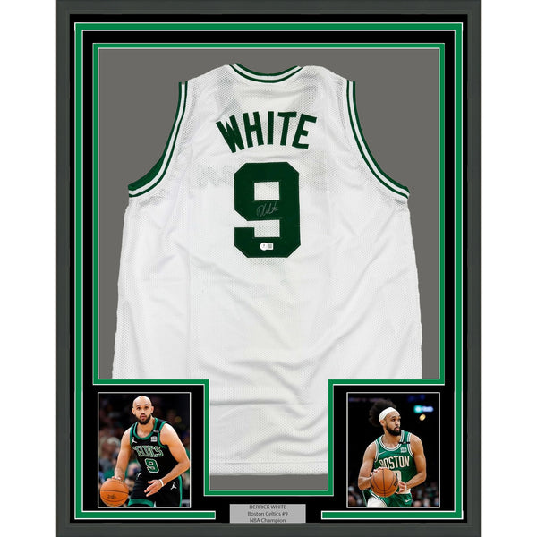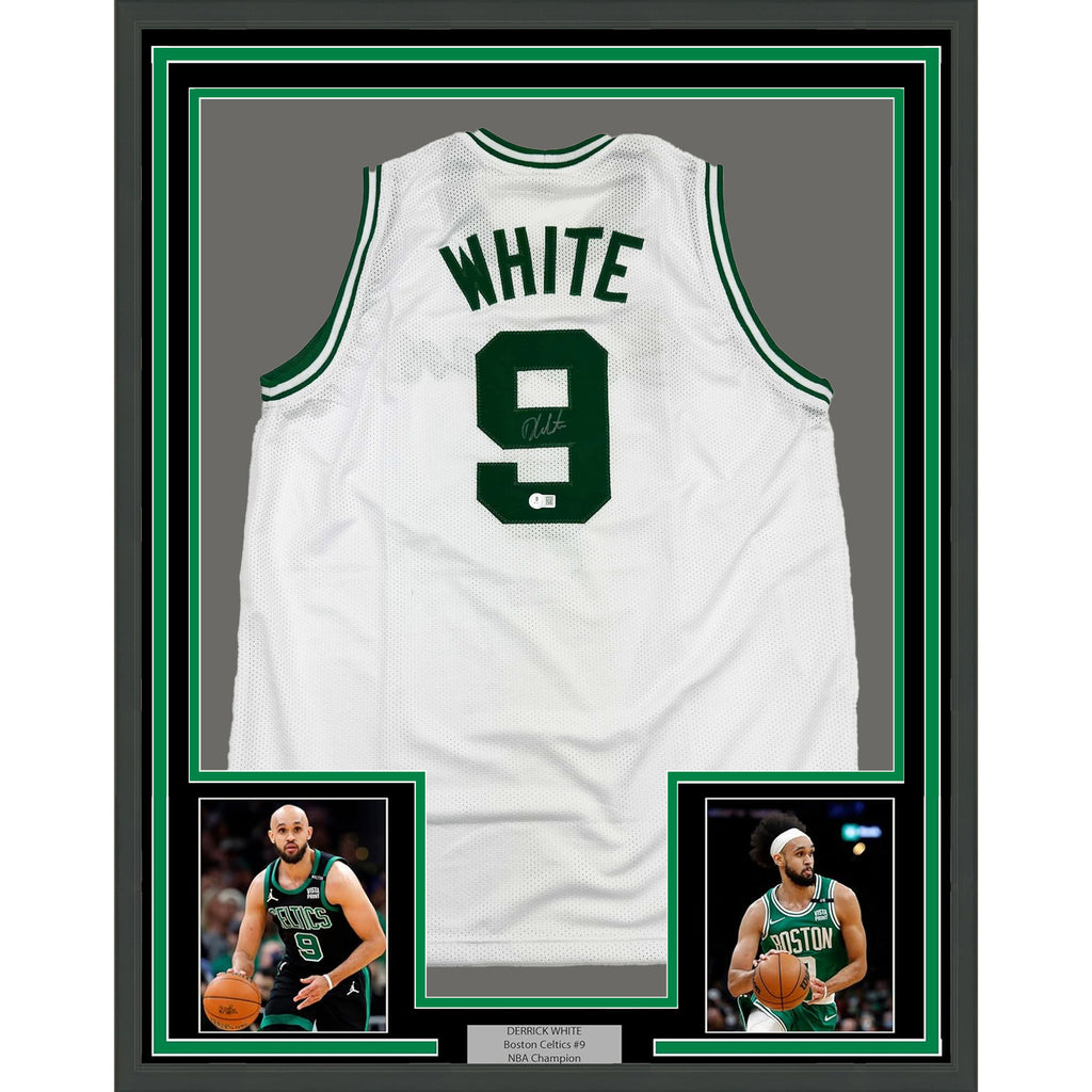 Framed Autographed/Signed Derrick White 35x39 Boston White Jersey BAS COA The item is professionally framed and matted with two 5x7 photos, measures 35x39 inches and is ready to be hung in your man cave! Photo and matting requests can be made.
