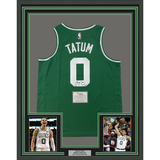 FRAMED Autographed/Signed JAYSON TATUM 33x42 Boston Celtics Green Green Jersey F This is a custom jersey and was not manufactured by or in any manner associated with any professional sports league or manufacturer. This custom jersey carries no professional sports league designation. The item is intended to be an autographed collectible. Reference of team in the title is to allow the purchaser a point of association. The custom jersey displays the name, number and authenticated signature of the player. This item in no way is affiliated with or connected to any professional sports organization. The autograph, as always is guaranteed to be authentic and has been certified as authentic by a third-party, trusted authenticator. Size is XL unless otherwise noted.