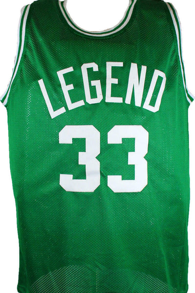Larry Bird Autographed Green Pro Basketball STAT Jersey-Beckett W Hologram *Black THIS IS NOT AN NBA JERSEY. THIS HAS NO TAGS, NO LOGOS, NO EMBLEMS. This is a hand autographed STAT Jersey of Larry Bird. This item has a Beckett Witnessed Authentication, which comes with a numbered sticker hologram and QR code for verification. You can view this item on the Beckett Authentication website, it shows when and where it was signed. It was signed either at a public autograph appearance or a private signing. This is a stock photo of the item. Although you may not receive this exact item, the item you receive is virtually identical and brand new in great shape. Jersey Size XL.