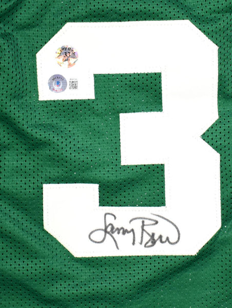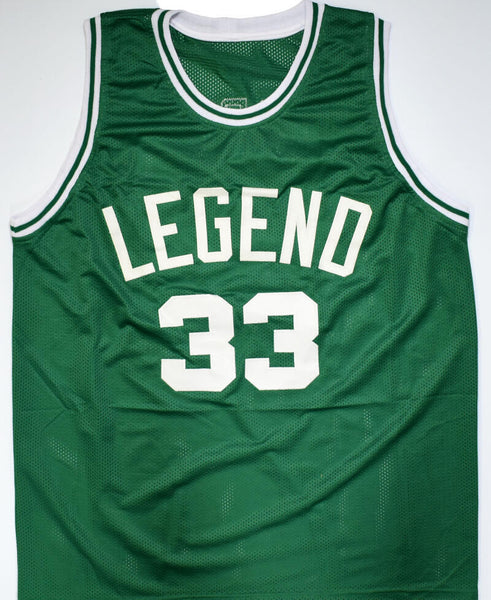 Larry Bird Autographed Green Pro Style Basketball Jersey-Beckett W Hologram *Black *L THIS IS NOT AN NBA JERSEY. THIS HAS NO TAGS, NO LOGOS, NO EMBLEMS. This is a hand autographed Jersey of Larry Bird. This item has a Beckett Witnessed Authentication, which comes with a numbered hologram and QR code for verification. You can view this item on the Beckett Authentication website, it shows when and where it was signed. It was signed either at a public autograph appearance or a private signing. This is a stock photo of the item. Although you may not receive this exact item, the item you receive is virtually identical and brand new in great shape. Jersey Size XL.