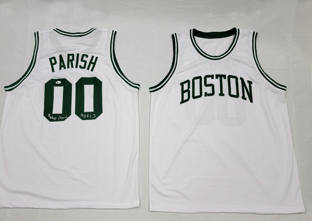 Robert Parish Autographed Boston Celtics White Custom Jersey W/ HOF 03 Beckett