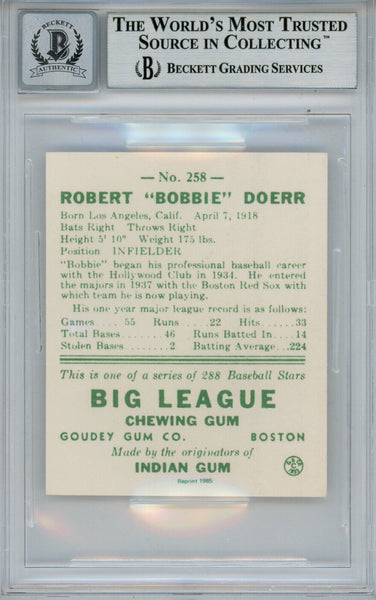 Bobby Doerr Signed 1938 Goudey Heads-Up '85 Reprints #258 Beckett 10 Slab 38438