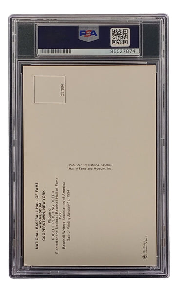 Featured is a Bobby Doerr (Boston Red Sox) signed 4x6 Hall Of Fame plaque card. This card has been hand signed by Doerr and has been authenticated and encapsulated by PSA/DNA. This card would make a great addition to any sports memorabilia collection!. SPECIFICATIONS Autographed By: Bobby Doerr Team: Boston Red Sox Sport: Baseball Authentication: Professional Sports Authenticator (PSA)
