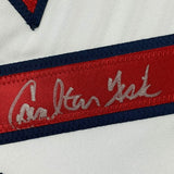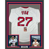 Framed Autographed/Signed Carlton Fisk 33x42 Boston White Jersey JSA COA Auto