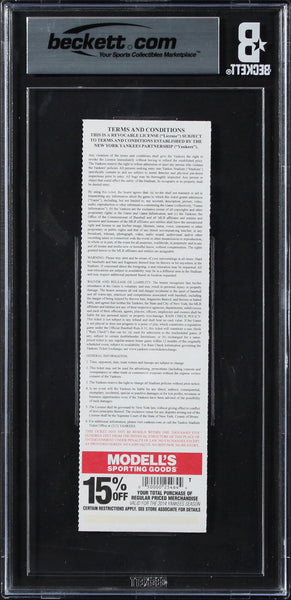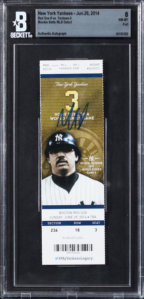 This Autographed Ticket Graded NM-MT 8 June 29, 2014 MLB Debut Full Ticket Stub has been Personally Signed by Mookie Betts of the Boston Red Sox. This item is 100% Authentic, it comes slabbed and authenticated by Beckett Authentication Services. The authenticity can be verified on Beckett Authentication Services website.