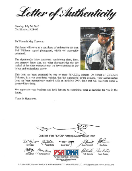 Ted Williams Autographed Boston Red Sox 16x20 Photo PSA/DNA Authenticated
