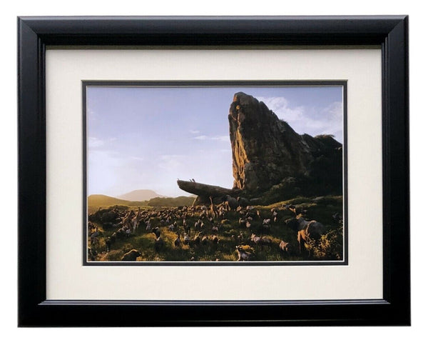 Featured is a framed 11x14 commemorative photo print from the 2019 The Lion King movie. This photo features the gathering at Pride Rock. Brand new professional framing featuring double matting. The frame measures approximately 18x16 in total size. The frame is ready for display... SPECIFICATIONS Autographed By: Team: Sport: Movies Authentication: James Spence Authentication (JSA)